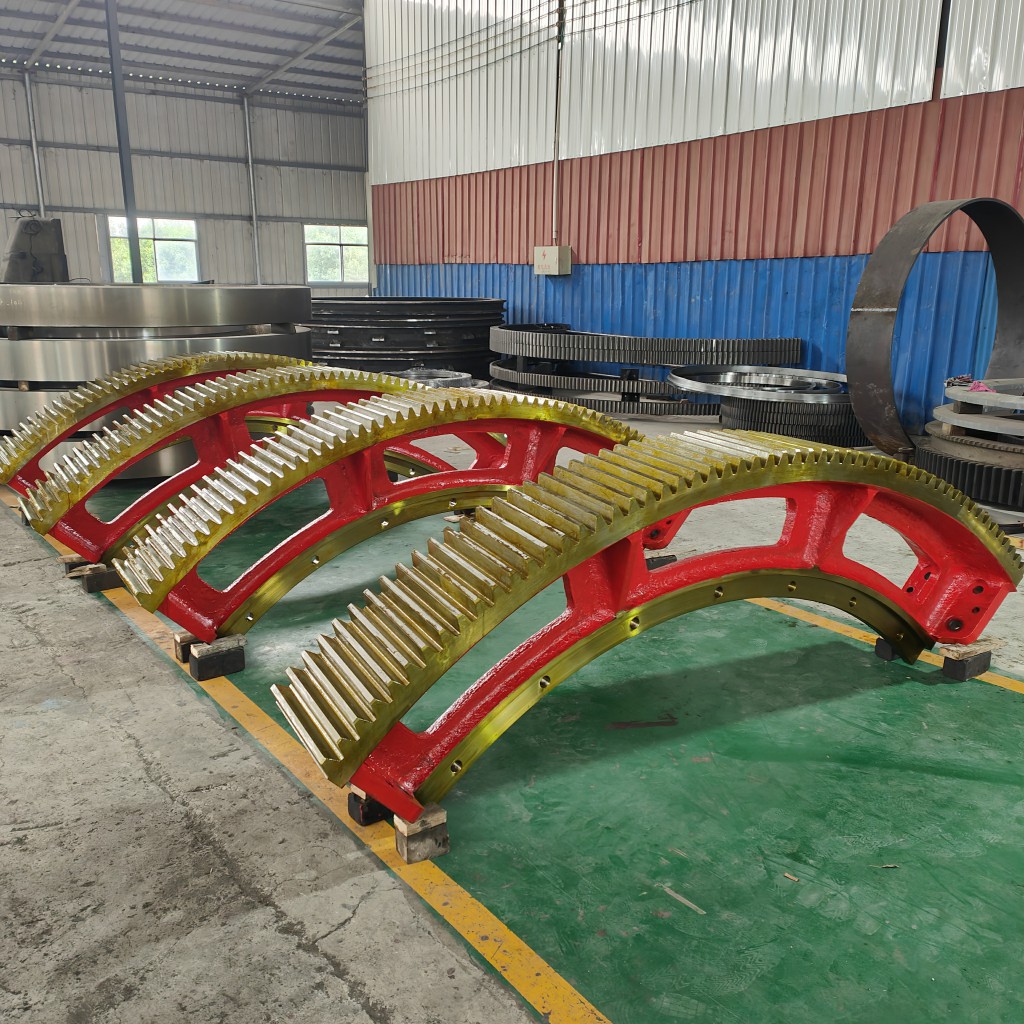 烘干機輪帶、烘干機托輪、烘干機擋輪、烘干機大齒圈是回轉式滾筒烘干機的主要傳動部件,各自起到不同的作用:
